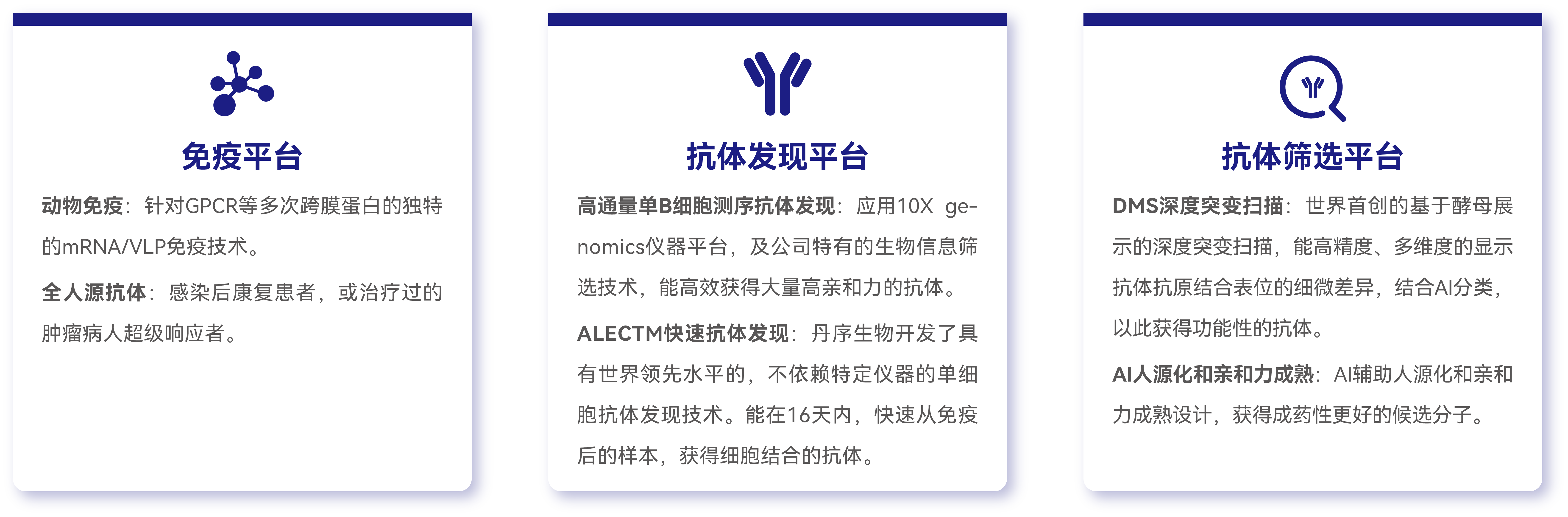 北京丹序生物制药有限公司是一家致力于利用单细胞测序技术,针对肿瘤、炎症和自免性疾病等适应症进行抗体药物研发的生物技术公司。丹序生物建成了从抗原免疫、单B细胞抗体发现、DMS抗体筛选到AI抗体工程一体化的抗体开发平台,可实现抗体类药物的高质量、高通量和高效率的快速研发。丹序生物已从医疗健康领域投资者处完成B轮融资,为高度未满足的临床需求开发创新生物药物。